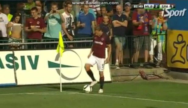Απίστευτο κι όμως αληθινό! Μία φίλαθλος της Σπάρτα Πράγας σήκωσε το φανελάκι της και έδειξε το στήθος της τη στιγμή που ένας ποδοσφαιριστής της ομάδας της ετοιμαζόταν να εκτελέσει κόρνερ στην αναμέτρηση με την Μλάντα Μπόλεσλαβ. Δείτε το σχετικό video.