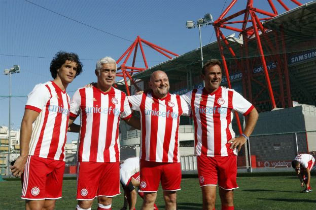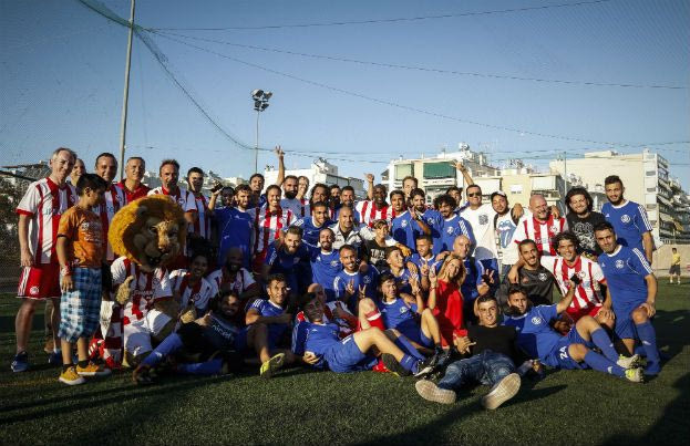 Ο Ολυμπιακός, πάντοτε πρωτοπόρος και αρωγός τέτοιων ενεργειών, με γνώμονα τον συνάνθρωπο, διοργάνωσε, στον απόηχο του συνεδρίου του Χάρβαρντ, ένα ξεχωριστό φιλικό, στο Καραϊσκάκη. Μεικτή ομάδα ομιλητών, ακαδημαϊκών και μη, παλαιών παικτών, αλλά και στελεχών του Θρύλου, αντιμετώπισε στο πλαστικό γήπεδο του Καραϊσκάκη, ομάδα προσφύγων! Μεταξύ άλλων συμμετείχαν ο Κριστιάν Καρεμπέ, ο Μάριο Ουσίγιος, ο Ντάρκο Κοβάσεβιτς, ο Φρανσουά Μοδέστο, ο Αντώνης Νικοπολίδης και ο Λιλιάν Τουράμ. Με τη μεικτή ομάδα αγωνίστηκε και ο Μιλτιάδης Μαρινάκης, καθώς και ο Πέτρος Κόκκαλης.