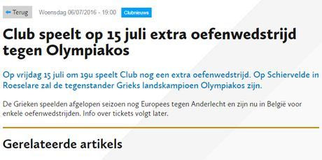 Ο Ολυμπιακός βρίσκεται από την Τετάρτη (6/7) στο Βέλγιο, όπου πραγματοποιεί το δεύτερο στάδιο της προετοιμασίας του. Στο πλαίσιο της παρουσίας τους εκεί, οι “ερυθρόλευκοι” είχαν προγραμματίσει να δώσουν τρία φιλικά παιχνίδια, με τη Γάνδη στις 8/7, με τη Βέστερλο στις 13/7 και με τη Σταντάρ Λιέγης στις 15/7.