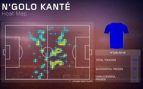 Δεν ήταν μονάχα ο MVP Παγέ που ξεχώρισε. Τα νούμερα του Ν’Γκολό Καντέ, στην πρεμιέρα του σε τέτοιο επίπεδο, ήταν εξωπραγματικά. Καντελελέ τον βάφτισαν ήδη. Είχε 92% στις μεταβιβάσεις (79/86), 10 ανακτήσεις μπάλας, 5 κλεψίματα, 3/3 τάκλινγκ, 1 ασίστ.