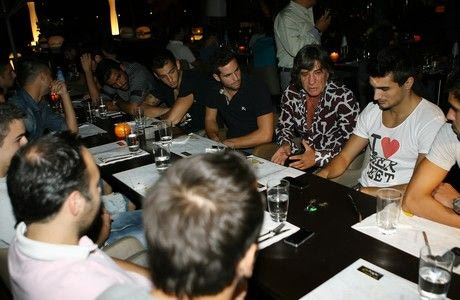 Οι πρώτοι που έφτασαν στο μαγαζί ήταν οι Κωνσταντόπουλος και Κατσικοκέρης, μαζί με τον Τσιάρτα και τον Μπόβαλη. Ακολουθούσαν όλοι οι παίκτες και ο Βαγγέλης Βλάχος με το προπονητικό τιμ και τους φυσιοθεραπευτές. Τελευταίος έφτασε στο δείπνο ο Ανδρέας Δημητρέλος, ο οποίος χαιρέτισε τους παίκτες και έκατσε ανάμεσα σε Βλάχο και Μπόβαλη, ενώ απέναντι τους είχαν τον Τσιάρτα.
