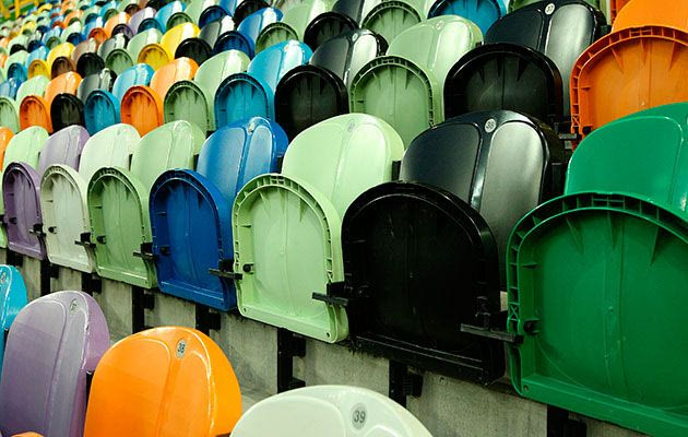Αν ρίξει μια ματιά κανείς στις κερκίδες θα δει πράσινα, μπλε, κίτρινα, μαύρα, άσπρα, πορτοκαλί καθίσματα. Με το πρώτο κοίταγμα μάλιστα φαίνεται λες και υπάρχει κόσμος στις εξέδρες και δεν είναι τα καθίσματα!