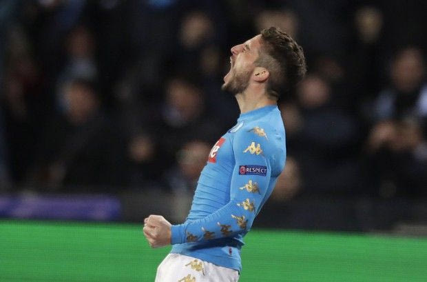 Napoli's Dries Mertens celebrates after scoring the opening goal during the Champions League round of 16, second leg, soccer match between Napoli and Real Madrid at the San Paolo stadium in Naples, Italy, Tuesday March 7, 2017. (AP Photo/Andrew Medichini) AP