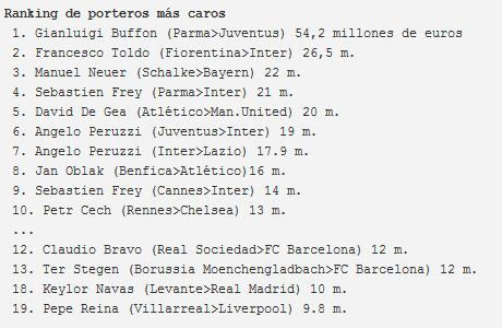 Οι δύο πορτιέρο της Μπαρτσελόνα κόστισαν περίπου 12 εκατομμύρια ευρώ ο καθένας, ενώ η μετακίνηση του Κέιλορ Νάβας στη Ρεάλ υπολογίζεται στα 10 εκατομμύρια.