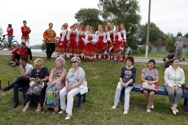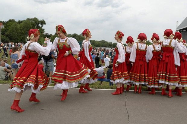 Dancers wait to perform at a celebration to mark Lionel Messi's birthday near Argentina's training camp base at the 2018 World Cup in Bronnitsy, Russia, Sunday, June 24, 2018. Wth a cake sculpture and a music festival the town of Bronnitsy celebrated the striker 31st birthday. (AP Photo/Ricardo Mazalan)