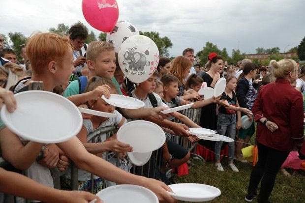 Children wait for cake at a celebration to mark Lionel Messi's birthday near Argentina's training camp base at the 2018 World Cup in Bronnitsy, Russia, Sunday, June 24, 2018. Wth a cake sculpture and a music festival the town of Bronnitsy celebrated the striker 31st birthday. (AP Photo/Ricardo Mazalan)