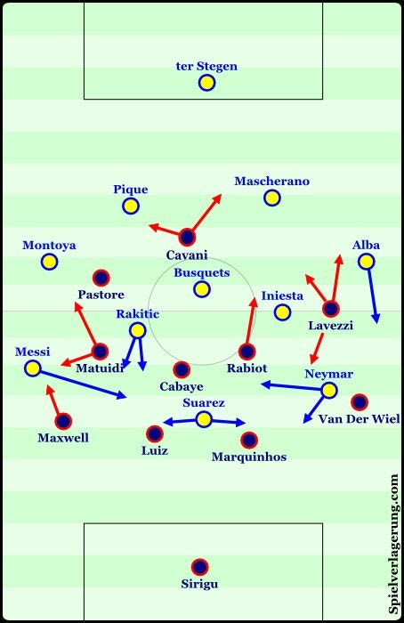 Στον αντίποδα, η απουσία του Κιελίνι εμποδίζει τον Ιταλό τεχνικό να χρησιμοποιήσει το πιο συγκρατημένο 3-5-2 που θα κάλυπτε καλύτερα τις πτέρυγες και τις διαγώνιες κινήσεις των Μέσι και Νεϊμάρ, ενώ ο Αντρέα Μπαρτζάλι που λογικά θα πάρει θέση στα στόπερ του 4-3-1-2, προέρχεται κι αυτός από μικροτραυματισμό κι ενώ είχε χάσει τους πρώτους 8 μήνες της σεζόν από σοβαρό πρόβλημα.