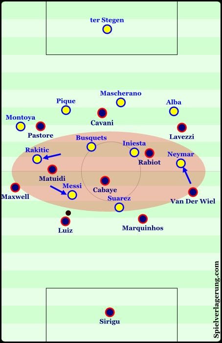 Με δύο παίκτες εξουδετερωμένους, κάθε πλάνο του αντίπαλου προπονητή, έστω και προσαρμοσμένο πάνω στο δόγμα “πώς σταματάμε τον Μέσι”, υφίσταται ισχυρό πλήγμα, μιας και πλέον οι αμυνόμενοι παίκτες δεν φτάνουν για τα μαρκαρίσματα των υπολοίπων Καταλανών.