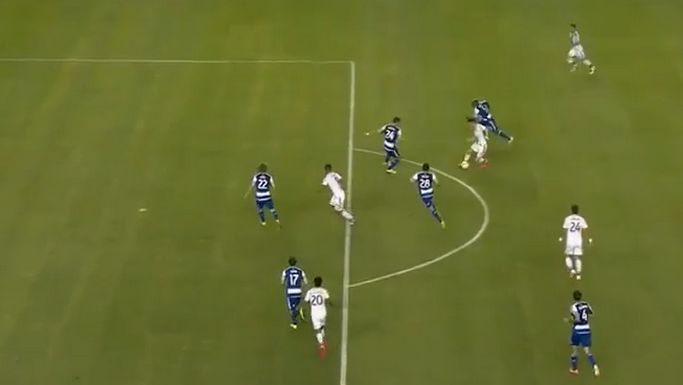 Ο πρώην άσος της Τότεναμ αφού πέρασε όποιον βρήκε μπροστά του, με σουτ έξω από την περιοχή άφησε άγαλμα τον αντίπαλο τερματοφύλακα.