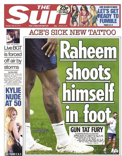 Όλα ξεκίνησαν όταν ο 23χρονος άσος εμφανίστηκε στη προπόνηση της εθνικής Αγγλίας με ένα μεγάλο τατού στο δεξί του πόδι που απεικόνιζε ένα πολυβόλο Μ16. Πολλοί τον κατηγόρησαν ότι με αυτόν τον τρόπο προωθεί τη βία, ενώ άλλοι χαρακτήρισαν το θέαμα “αηδιαστικό” και “απαράδεκτο” για ένα δημόσιο πρόσωπο που θα έπρεπε να αποτελεί πρότυπο.