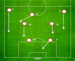 • Οι πλάγιοι του κέντρου συνέκλιναν συνεχώς προς της περιοχή και κοντά στον Ιμπραΐμοβιτς για να δώσουν επιλογές πάσας. Άφησαν το παιχνίδι στην γραμμή και προσπάθησαν να φορτώσουν τον άξονα. Το πέτυχαν στο δεύτερο ημίχρονο, όταν και προηγήθηκαν.