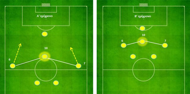 • Αμυντικά χαφ που έκλειναν τους χώρους στον άξονα και έκαναν στον τρίτο παίκτη στις πλαγιοκοπήσεις των αντιπάλων.