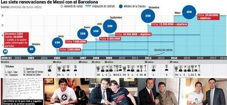 Ο “Pulga” υπέγραψε το 2014 το τελευταίο του συμβόλαιο με την Μπαρτσελόνα που έχει ισχύ μέχρι το 2018 και βάση του οποίου αμείβεται με 20.000.000 ευρώ το χρόνο (χωρίς να υπολογίζονται τα μπόνους επίτευξης στόχων) ωστόσο όλα δείχνουν πως η επέκταση της συνεργασίας των δύο πλευρών δεν θα είναι εύκολη υπόθεση.