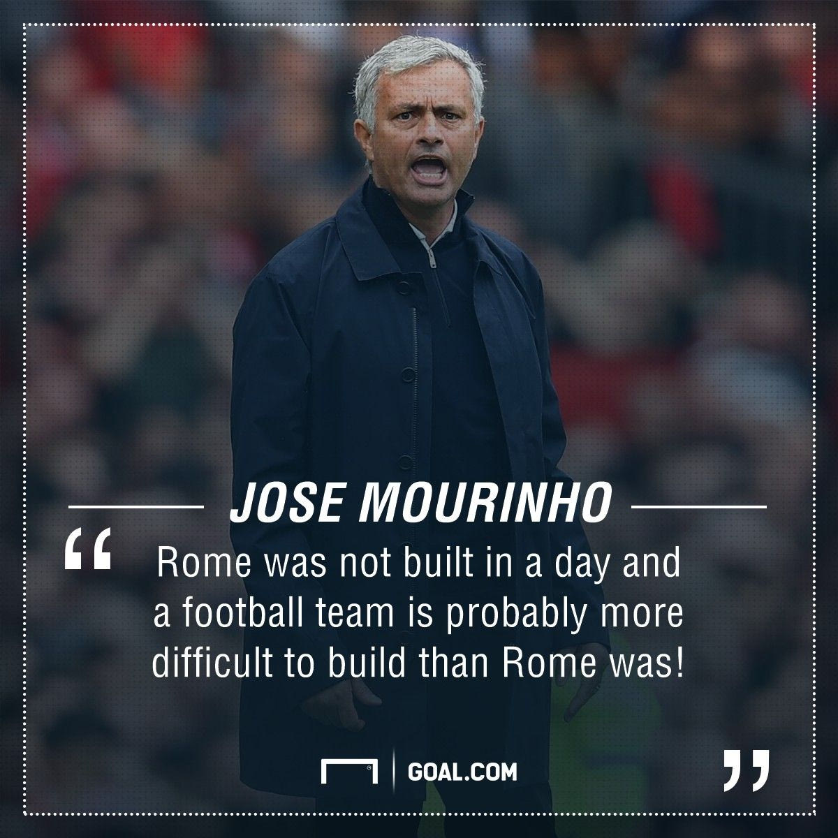 Φυσικά, συνέντευξη του Μουρίνιο χωρίς μεγάλες ατάκες δεν γίνεται και έτσι και τώρα ο “special one” φρόντισε να… αποζημιώσει τους φανς του λέγοντας: “Η Ρώμη δεν χτίστηκε σε μία ημέρα και μία ποδοσφαιρική ομάδα είναι δυσκολότερο να χτιστεί σε σύγκριση με τη Ρώμη. Έχω πάντως ένα θετικό προαίσθημα για την ομάδα”.