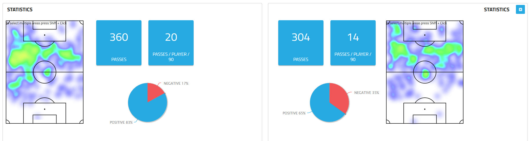 Ο Σέρχιο Αραούχο μετρά περισσότερες πάσες, ενώ ταυτόχρονα είναι και πιο αποτελεσματικός. Ο Αργεντινός μετρά 360 πάσες με ποσοστό επιτυχίας στο 83% ενώ ο Αλεξάνταρ Πρίγιοβιτς μετρά 304 πάσες με ποσοστό επιτυχίας στο 65%. Στο ποσοστό του Πρίγιοβιτς συμπεριλαμβάνονται και οι πάσες που προσπάθησε να βγάλει όταν, μετά από γέμισμα από τη μεγάλη περιοχή, κινήθηκε για να υποδεχθεί με το κεφάλι την μπάλα και να βρει συμπαίκτη του, φάση στην οποία ο βαθμός δυσκολίας είναι μεγαλύτερος από το να υποδεχθείς τη μπάλα με τα πόδια και να τη μοιράσεις σε συμπαίκτη σου.