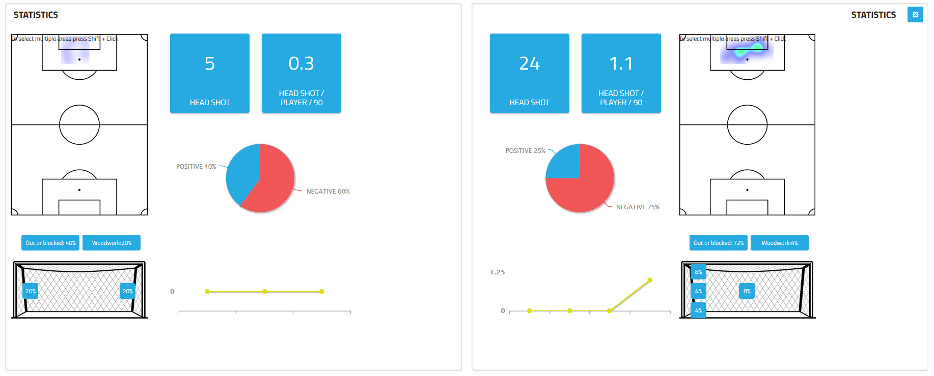 Ήταν δεδομένο πως σε αυτή τη κατηγορία ο Αλεξάνταρ Πρίγιοβιτς θα υπερτερούσε σε ποσότητα, αλλά δεν συμβαίνει το ίδιο και με την “ποιότητα” (και όμως μάλλον αναμενόμενο λόγω του μικρού δείγματος γραφής από την πλευρά του πρώτου). Ο Σέρχιο Αραούχο μετρά πέντε τελικές με το κεφάλι, έναντι 24 του Αλεξάνταρ Πρίγιοβιτς, με τον Αργεντινό να έχει ποσοστό επιτυχίας στο 40$ και τον Σέρβο στο 25%. Μάλιστα από τις κεφαλιές τους, ο καθένας έχει δει από μια να χτυπά στο δοκάρι της αντίπαλης εστίας.