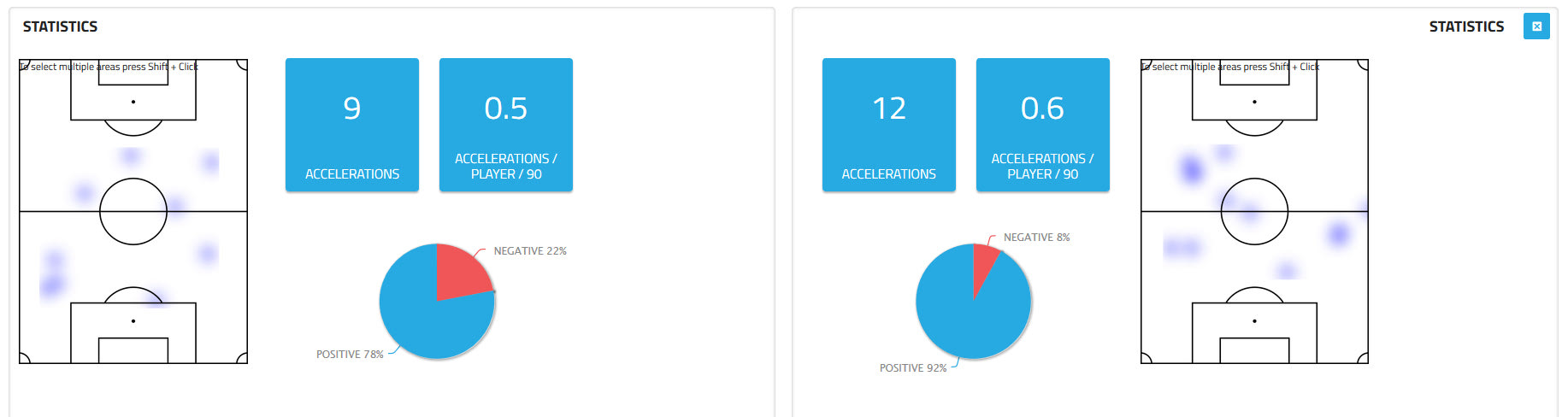 Αν και ο Αραούχο είναι ο παίκτης οι περισσότεροι θα περίμεναν να έχει ξεχωρίσει στο τομέα των επιταχύνσεων με τη μπάλα στα πόδια, ο Πρίγιοβιτς είναι εκείνος που έχει περισσότερες ενέργειες και με μεγαλύτερο ποσοστό επιτυχίας. Βέβαια, το δείγμα και για τους δυο είναι μικρό, με τον Αργεντινό να έχει εννιά με πετυχημένο το 78% των ενεργειών του, και τον Πρίγιοβιτς να έχει δώδεκα, με πετυχημένο το 92% των ενεργειών του.