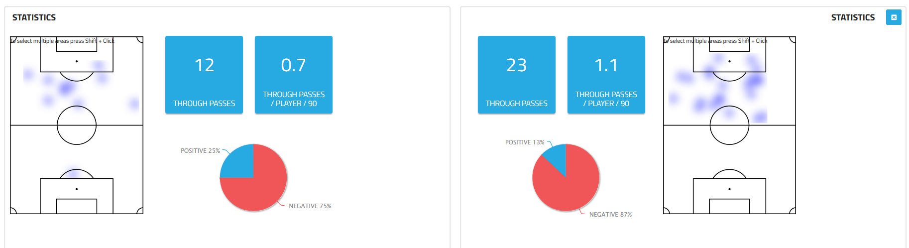 Με βάση τον σωματότυπό τους, ο Αραούχο είναι ο ιδανικός παίκτης για να περιμένει και να υποδεχθεί κάθετη πάσα προκειμένου να εκμεταλλευτεί την ταχύτητά του, και ο Πρίγιοβιτς είναι ο ιδανικός παίκτης για να υποδεχθεί τη μπάλα λίγο κάτω από τη μεσαία γραμμή και να ψάξει με πάσα συμπαίκτη του που θα έχει προωθηθεί για να εκμεταλλευτεί την ταχύτητά του. Και αυτή η διαφορά στο παιχνίδι τους καταγράφεται στις κάθετες πάσες, με τον Αραούχο να έχει επιχειρήσει δώδεκα με ποσοστό επιτυχίας το 25% και τον Πρίγιοβιτς έχει επιχειρήσει 23 με ποσοστό επιτυχίας στο 13%.
