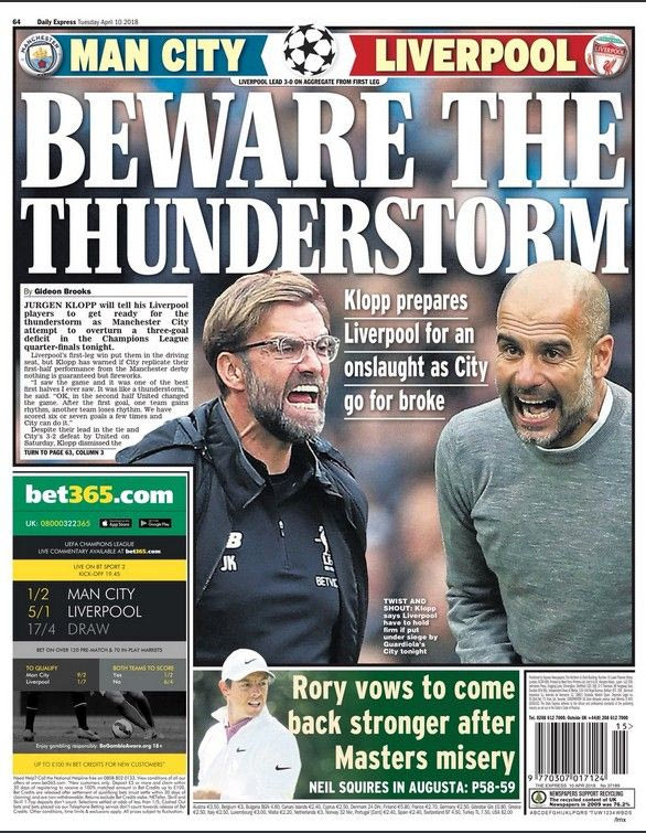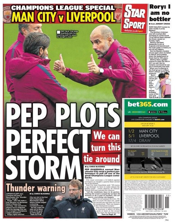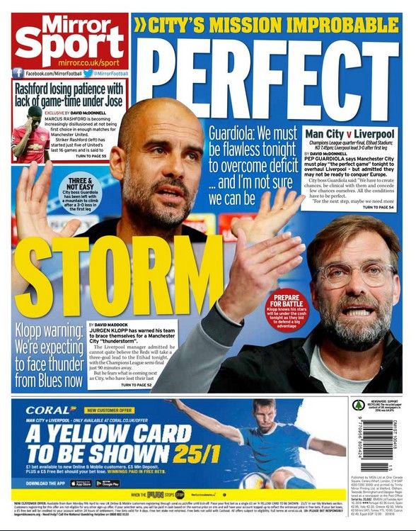 Ε, τα ΜΜΕ στο Νησί δεν ήθελαν και πολύ και στηριζόμενα στην “τέλεια ομάδα” του Γκουαρδιόλα και στους… κεραυνούς του Κλοπ, έφτιαξαν τα πρωτοσέλιδά τους με τις λέξεις “Perfect” και “Thunderstorm”.