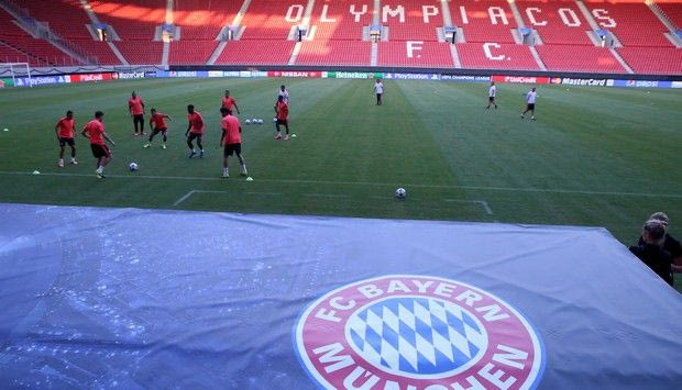 Οι παίκτες της Μπάγερν Μονάχου έκαναν την απογευματινή τους προπόνηση στο γήπεδο του Ολυμπιακού, μία ημέρα πριν την πρεμιέρα του Champions League.