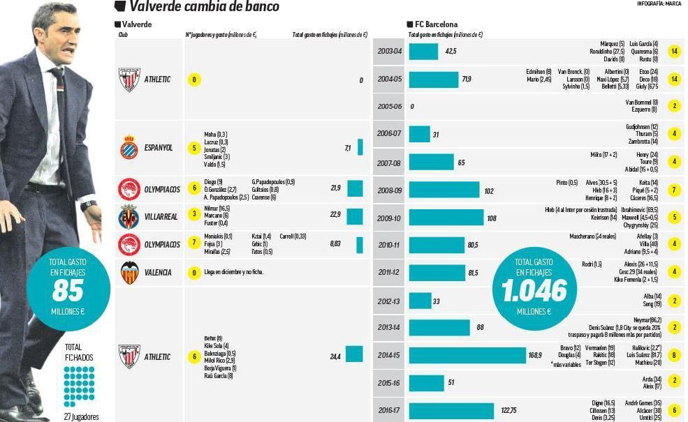 Πλέον τα δεδομένα είναι διαφορετικά. Η Μπαρτσελόνα έχει ένα από τα μεγαλύτερα μπάτζετ στο παγκόσμιο ποδόσφαιρο και σχεδόν όλοι οι παίκτες θα ήθελαν να παίξουν στο “Καμπ Νου” και δίπλα στον Λιονέλ Μέσι. Τι σημαίνει αυτό για τον Βαλβέρδε; Ότι μέσα σε ένα καλοκαίρι είναι πολύ πιθανό να ξοδέψει περισσότερα εκατομμύρια από ό,τι είχε κάνει σε όλη την καριέρα του μέχρι σήμερα.