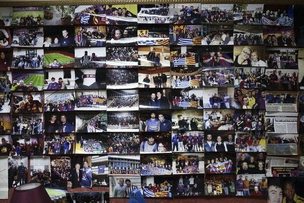 Εκεί πάντως που μας… τρέλαναν οι δύο συνεντευξιαζόμενοι ήταν όταν τους ζητήσαμε να αποκαλύψουν το πιο τρελό πράγμα που έχουν κάνει για την “Μπάρσα”. Η Κατερίνα πρώτα μου έδειξε τη φουσκωμένη κοιλιά της, μιας που βρίσκεται σε προχωρημένο στάδιο εγκυμοσυνης, και ακολούθως μου είπε: “Βλέπεις; Στις 14 Νοεμβρίου γεννάω και στις 31 Οκτωβρίου θα είμαι στο γήπεδο”! Ο Στάθης σηκώθηκε από τη θέση του, με οδήγησε στο κεντρικό διάδρομο (τον οποίο βλέπεις με το που βρίσκεσαι στο κατώφλι του συνδέσμου) όπου είναι γεμάτος από φωτογραφίες με χρώμα μπλαουγκράνα και επέλεξε μία, με τον ίδιο να απεικονίζεται φορώντας τη φανέλα της Μπαρτσελόνα έχοντας δίπλα του τον… Φλορεντίνο Πέρεθ, πρόεδρο της Ρεάλ Μαδρίτης!