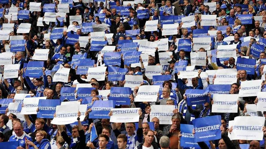 Περισσότεροι από 60.000 φίλαθλοι της Σάλκε σήκωσαν χαρτόνια που έγραφαν “σηκωθείτε” πριν από τη σέντρα του αγώνα της “Βέλτινς Αρίνα” με την Μάιντς.