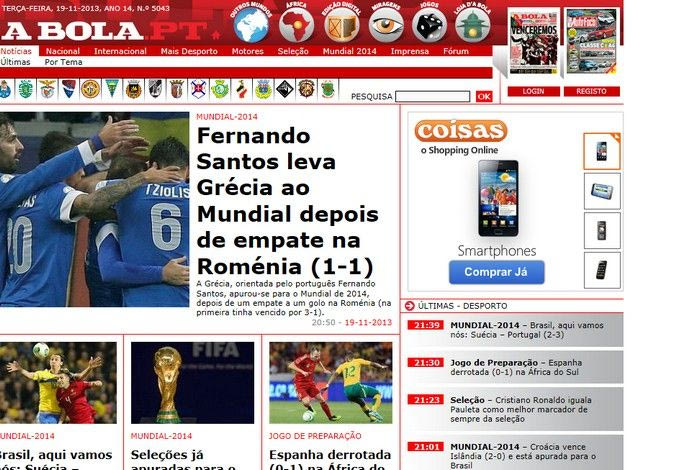 “Η Ελλάδα δίχως κόπο. Μετά από τη νίκη 3-1 στο πρώτο ματς, η Ελλάδα διαχειρίστηκε τέλεια τον επαναληπτικό στη Ρουμανία (1-1) για να επικυρώσει την πρόκριση στο Μουντιάλ 2014”.