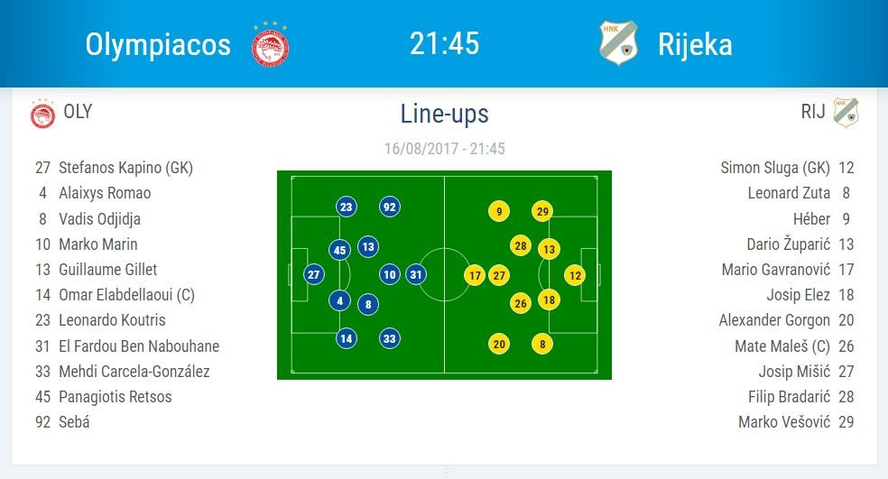 Η ενδεκάδα του Ολυμπιακού με την Ριέκα