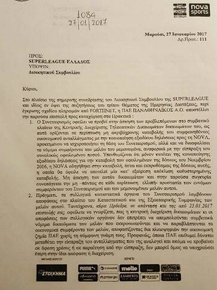 Η επιστολή του Παναθηναϊκού για τη Nova