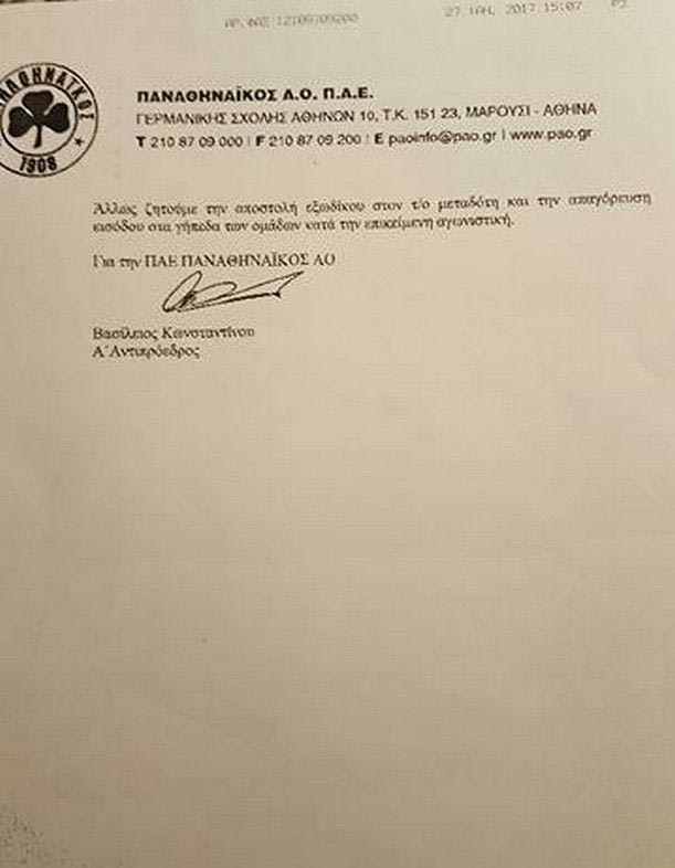 Ιδού η επιστολή που απέστειλλε στη Λίγκα ο Παναθηναϊκός με τις θέσεις του σχετικά με τη διαμάχη του με το συνδρομητικό κανάλι.