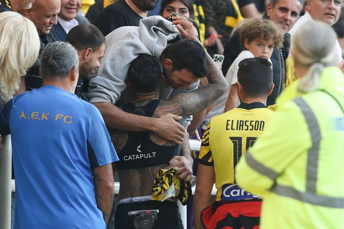 Ο Σέρχιο Αραούχο όταν έληξε η αναμέτρηση της ΑΕΚ με τον Ατρόμητο έδωσε τη φανέλα του στον ομόλογό του στην μπασκετική ομάδα της Ένωσης.