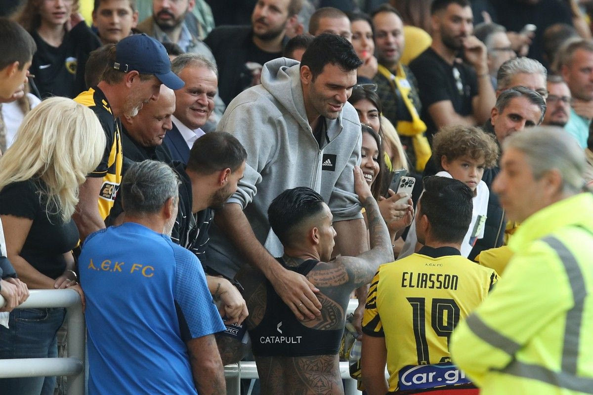 Ο συγκεκριμένος άνθρωπος είναι επίσης αρχηγός της ΑΕΚ, αλλά στο μπασκετικό τμήμα και φυσικά αναφερόμαστε στον Δημήτρη Μαυροειδή. Ο τσίνο, όπως θα δείτε και στις φωτογραφίες παρακάτω, έδωσε τη φανέλα με το 11 στον ομόλογό του και αμφότεροι αποθεώθηκαν.