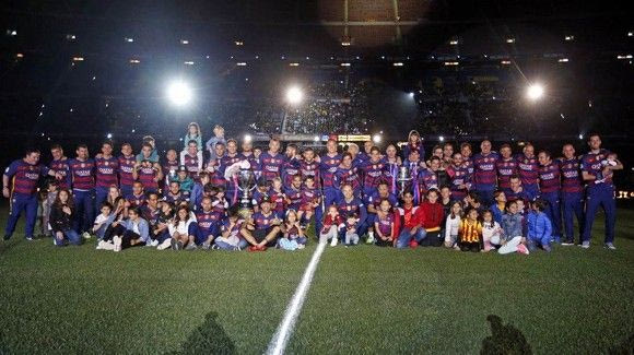 Μία ημέρα μετά την κατάκτηση του Κυπέλλου Ισπανίας που “σφράγισε” ένα ακόμη double για την Μπαρτσελόνα, η καταλανική ομάδα το γιόρτασε με μια εντυπωσιακή φιέστα στο γήπεδό της. Ο κόσμος ανταποκρίθηκε στο κάλεσμα, γέμισε τις εξέδρες του “Καμπ Νου” και είδε από κοντά τη μεγάλη γιορτή των “μπλαουγκράνα”.