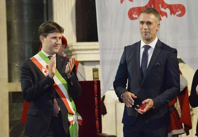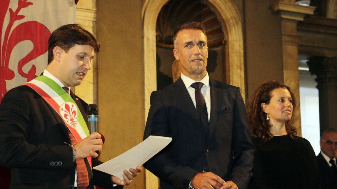 Foto IPP/Carlo Ferraro firenze 03-10-2016 nella foto l' ex calciatore omar Gabriel Batistuta riceve la cittadinanza onoraria dal sindaco di firenze Dario Nardella IPP