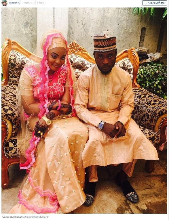 Ο Ατζαγκούν φοράει παραδοσιακή αμφίεση όπως και η καλή του, ενώ από κάτω γράφει: “Συγχαρητήρια σε εμένα, Alhamdulillah (Δόξα στο Θεό)”.