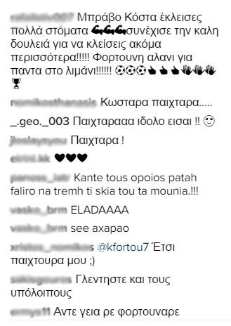 Στη φωτογραφία ο Φορτούνης έχει απλωμένα τα χέρια και πανηγυρίζει κοιτώντας τον ουρανό. Δίπλα του για να τον αγκαλιάσουν τρέχουν ο Σεμπά και ο Ιντέγε. Όπως είναι λογικό οι φίλοι του Ολυμπιακού τον αποθέωσαν στα σχόλια, γράφοντάς του μεταξύ άλλων πως τον “πιστεύουν”, “να μην ακούει κανέναν” και πως “έκλεισε πολλά στόματα”.