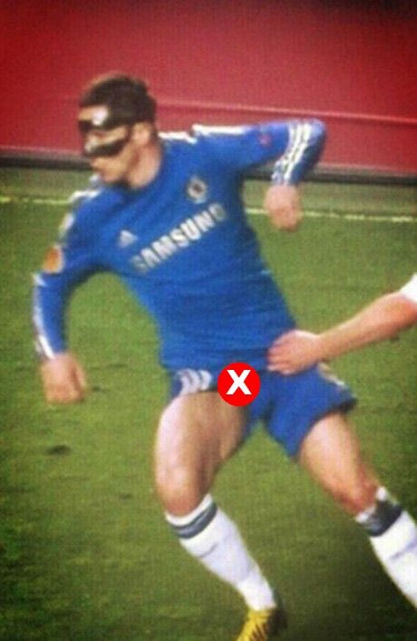 Είναι από τα σπάνια ατυχήματα που συμβαίνουν στο ποδόσφαιρο... Ο "μασκοφόρος" Φερνάντο Τόρες έπεσε θύμα μαρκαρίσματος αντιπάλου με συνέπεια να τραβηχτεί σε τέτοιο βαθμό το σορτσάκι του που αποκαλύφθηκε... απόκρυφο σημείο του.