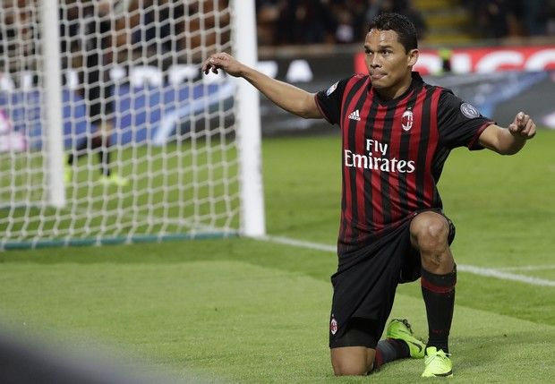AC Milan's Carlos Bacca celebrates after scoring his side's second goal during a Serie A soccer match between AC Milan and Chievo Verona, at the San Siro stadium in Milan, Italy, Saturday, March 4, 2017. (AP Photo/Luca Bruno) AP