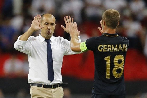 Monaco's head coach Leonardo Jardim, left, celebrates with Monaco's Valere Germain after the Champions League Group E soccer match between Tottenham Hotspur and Monaco at Wembley stadium in London Wednesday, Sept. 14, 2016. (AP Photo/Frank Augstein) AP