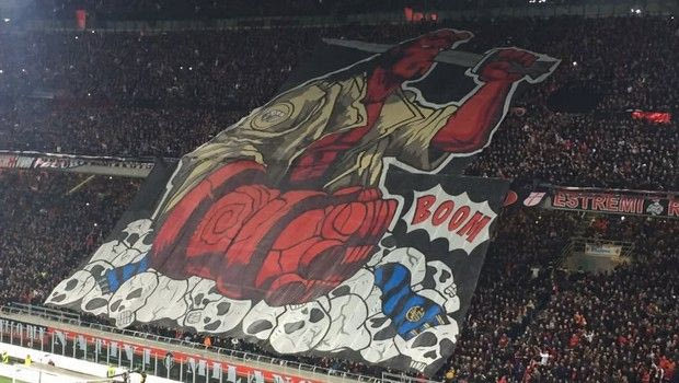 Όταν εμφανίστηκε το κορεό στην Curva Sud, με τον διάσημο ήρωα της Marvel να συνθλίβει με τη γροθιά του κρανία στα οποία υπήρχε κι ένα κασκόλ της Ίντερ, με σλόγκαν “Στείλτε τους στην κόλαση”, η Μίλαν είχε προσπεράσει κατά έναν βαθμό το… ξαδερφάκι της.