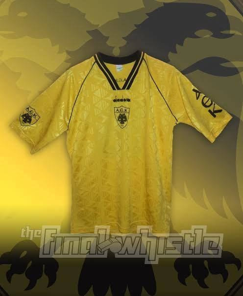 Έτσι, ενώ η φανέλα της ΑΕΚ εκείνη την περίοδο ήταν η γνωστή Robe di Kappa με τον μεγάλο Δικέφαλο στο αριστερό μέρος, στο Χαριλάου με τον Άρη έπαιξε με μία κίτρινη Diadora η οποία φορέθηκε μόνο για εκείνη τη μέρα. Φυσικά δεν ξαναβγήκε από τις ντουλάπες ποτέ και μένει στην ιστορία ως καταραμένη αφού συνδυάστηκε με ένα ματς το οποίο δεν θέλει να θυμάται κανείς.