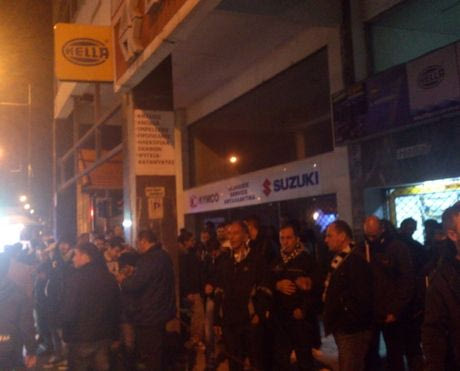 Αναβρασμός επικράτησε αργά το βράδυ στο κέντρο της Αθήνας λόγω της απόφασης οπαδών του ΠΑΟΚ να κρατήσουν τον Πανελλήνιο Σύνδεσμο Φίλων ΠΑΟΚ ανοιχτό, παρά την αρνητική στάση της Αστυνομίας.