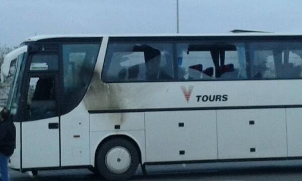 9:55: Επίθεση με πέτρες και μολότοφ, δέχτηκε πούλμαν με φίλους του ΠΑΟΚ που αναχωρούσε για τον μεγάλο τελικό στο ΟΑΚΑ, από τη Ν. Κρήνη. Σύμφωνα με πληροφορίες 15 – 20 άτομα βρισκόταν κρυμμένα πίσω από εκκλησία της περιοχής και στη θέα του λεωφορείου πέταξαν πέτρες και μολότοφ, τραυματίζοντας ελαφρά έναν φίλο του Δικεφάλου.