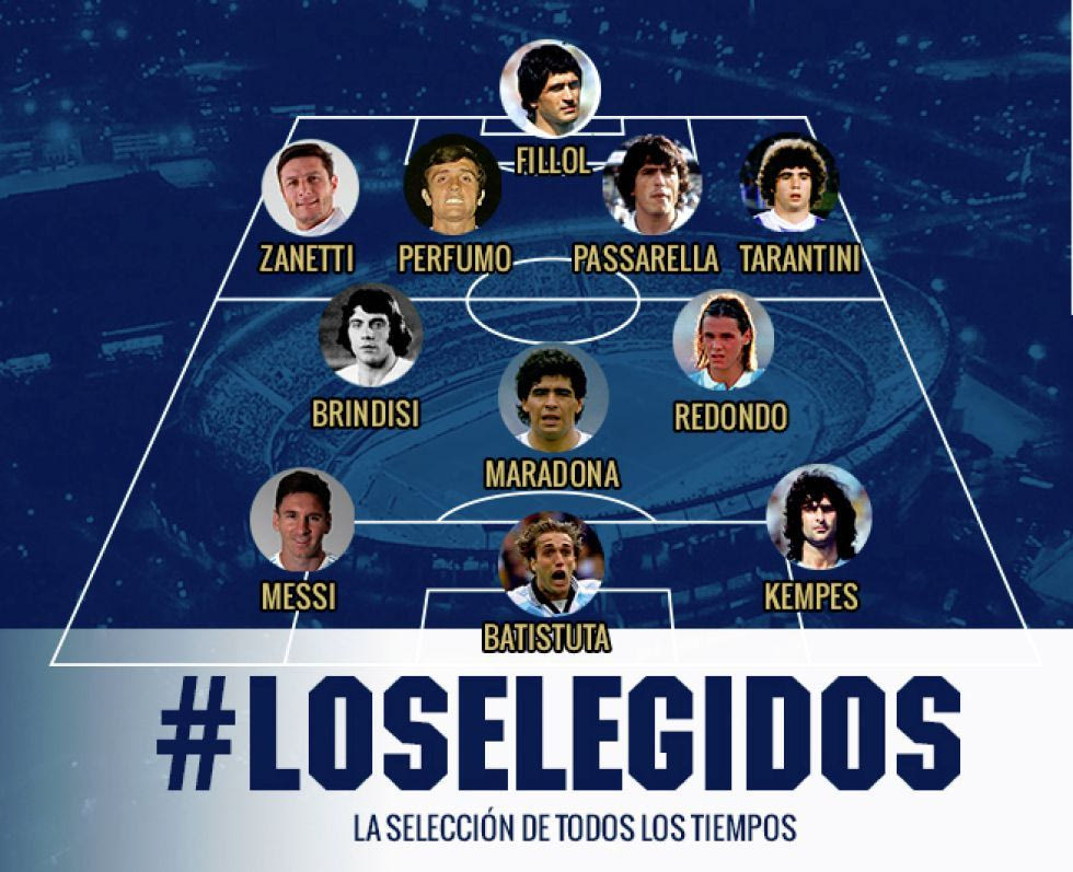 Η Ποδοσφαιρική Ομοσπονδία της Αργεντινής, σε συνεργασία με πέντε σπουδαίες μορφές του ποδοσφαίρου της χώρας (Κάρλος Ίσκια, Ρούμπεν Ινσούα, Ντιέγκο Κόκκα, Ρικάρντο Ζιελίνσκι και Ρικάρντο Ρέτσα) επέλεξαν τους 11 κορυφαίους ποδοσφαιριστές που έχουν φορέσει τη φανέλα της “αλμπισελέστε”.