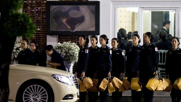Την ώρα που η ομάδα του Ταϊλανδού επιχειρηματία βρισκόταν στην ουαλική πρωτεύουσα για τον αγώνα της 9ης αγωνιστικής στην Premier League, στα 9.727 χιλιόμετρα νοτιοανατολικά, στην Μπανγκόκ, φίλοι, συγγενείς και διακεκριμένοι πολίτες της χώρας έλεγαν το ‘στερνό’ αντίο σε ένα εξέχον πρόσωπο της κοινωνίας.