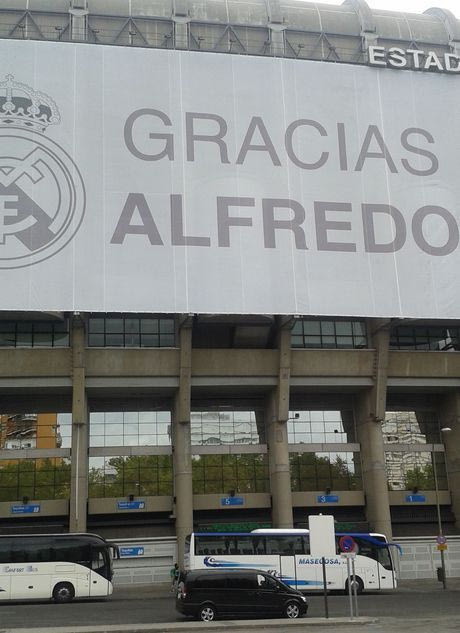 Το ένα γράφει”Gracias Alfredo”(ευχαριστούμε Αλφρέδο) και το άλλο έχει μία τεράστια φωτογραφία του (πρόσφατη) με φόντο μια άλλη στην οποία φορά τη φανέλα της Ρεάλ.