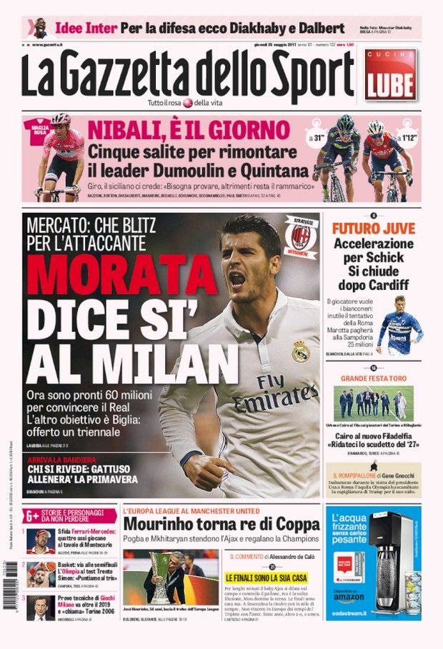 Ο Μοράτα δεν είναι πάντως ο μοναδικός στόχος που έχει αποκαλυφθεί καθώς η εφημερίδα αναφέρει πως οι “ροσονέρι” επιθυμούν να αποκτήσουν και τον Λούκας Μπίγλια της Λάτσιο, προσφέροντάς του μάλιστα τριετές συμβόλαιο συνεργασίας.