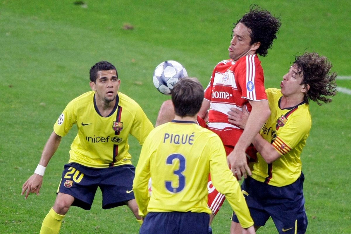 Ο Λούκα Τόνι της Μπάγερν σε στιγμιότυπο με τους Ντάνι Άλβες, Ζεράρ Πικέ και Κάρλες Πουγιόλ της Μπαρτσελόνα για τον 2ο προημιτελικό του Champions League 2008-2009 στην 'Άλιαντς Αρένα', Μόναχο | Τρίτη 14 Απριλίου 2009 AP Photo/Matthias Schrader