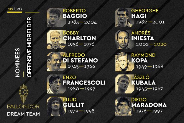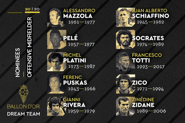 Οι υποψήφιοι του France Football για τον τίτλο του καλύτερου επιθετικού μέσου όλων των εποχών France Football